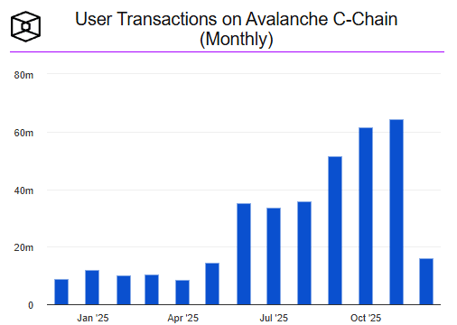 C-Chain transactions rose consistently throughout 2025, providing the type of recurring usage that investors monitor when assessing long-term viability.