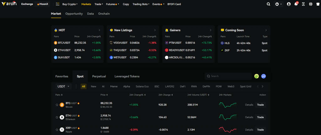 BYDFi’s spot trading feature allows users to buy and sell cryptocurrencies at current market prices. The process is simple and transparent, making it ideal for first-time traders.