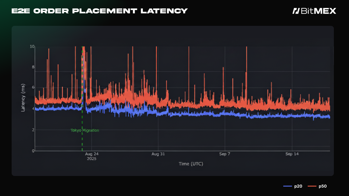 今年 8 月,BitMEX 正式将其数据基础设施从 AWS 都柏林迁移至 AWS 东京。此举旨在通过降低延迟来提升平台流动性,从而增加 BitMEX 的做市商数量。